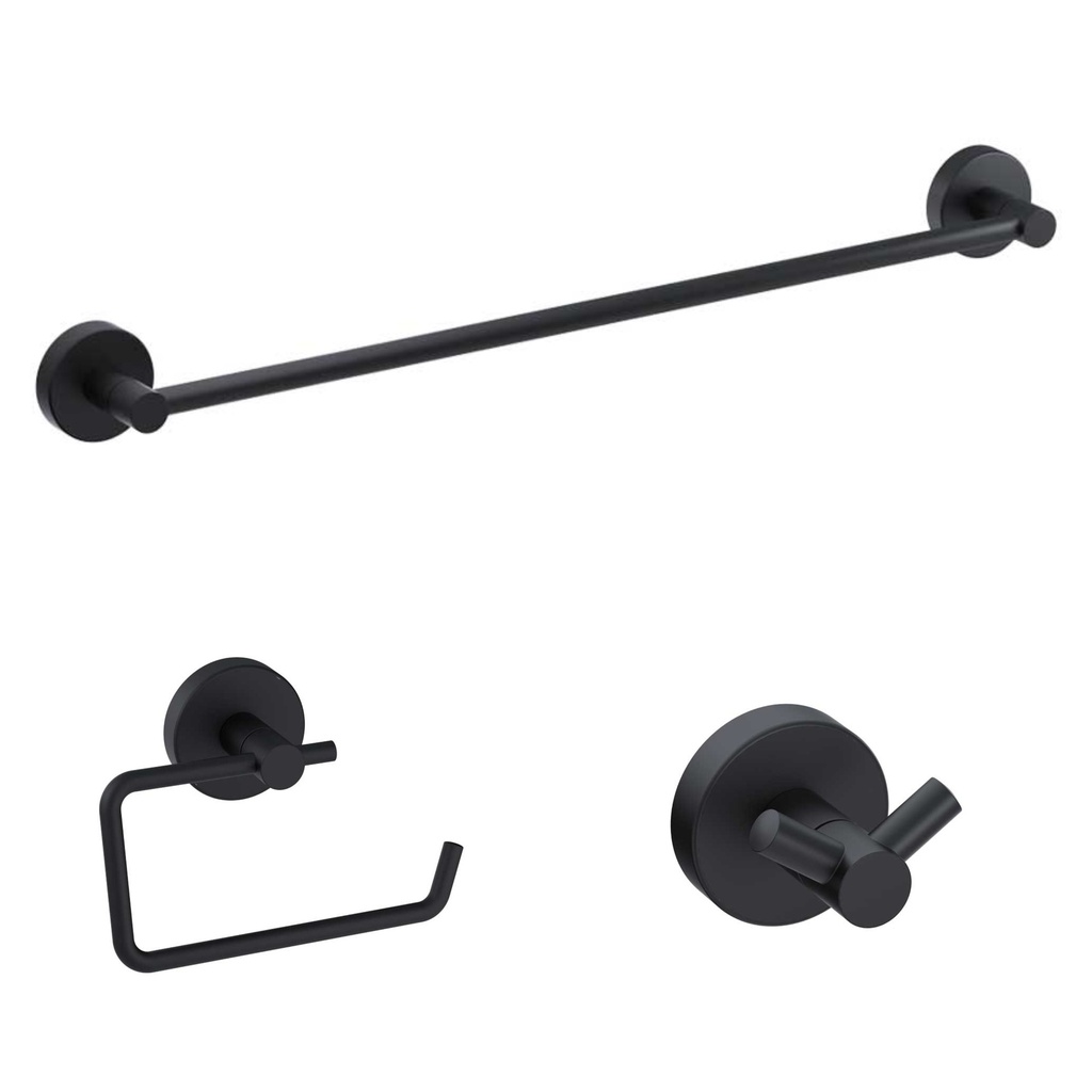 PROJE Accessories Set is 3-pice Hanger with Double Pins - Long Towel Holder - Toilet Paper Holder.